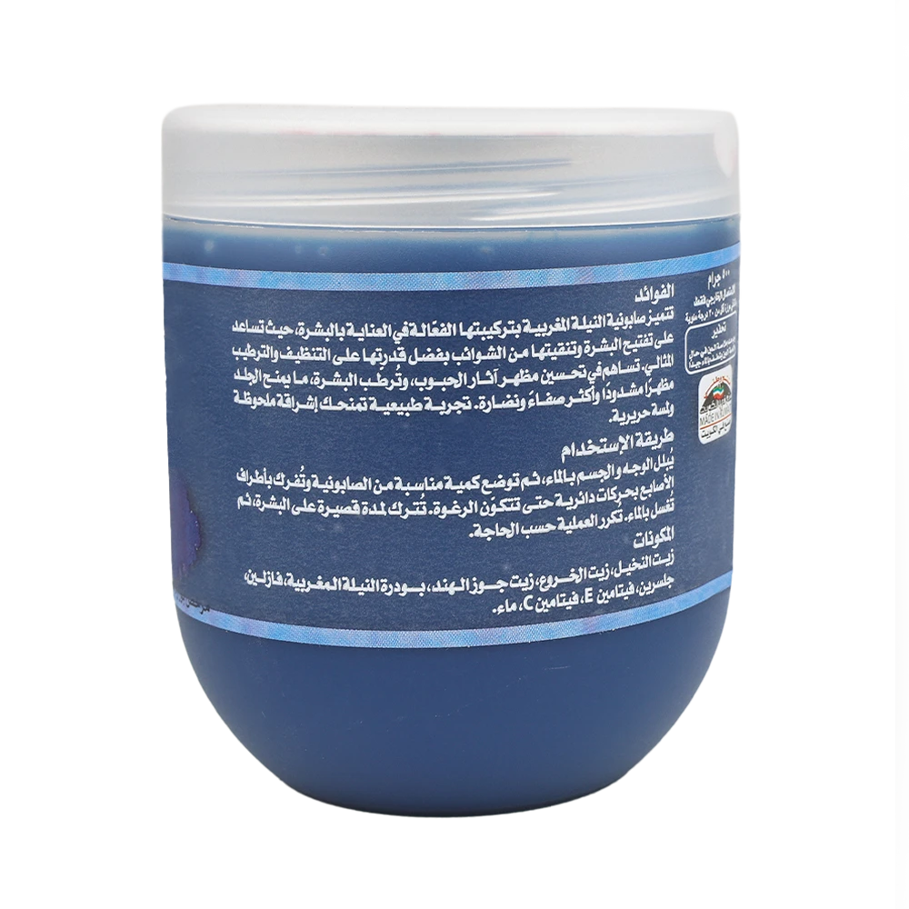 تتميز صابونية النيلة المغربية الصحراوية بتركيبتها الفعّالة في العناية بالبشرة، حيث تساعد على تفتيح البشرة وتنقيتها من الشوائب بفضل قدرتها على التنظيف والترطيب المثالي. تساهم في تحسين مظهر آثار الحبوب،