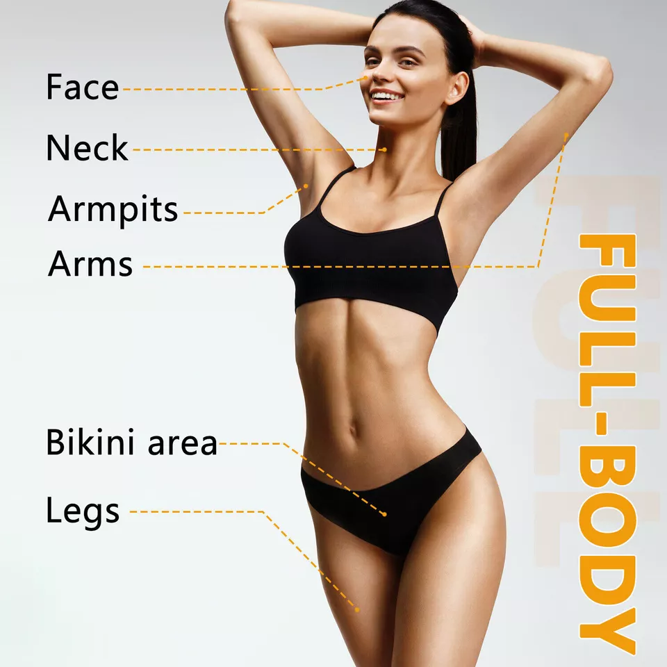 يمكن استخدام الجهاز لإزالة الشعر من الوجه، الساقين، الذراعين، الإبطين، ومنطقة البكيني، مما يجعله حلاً شاملاً يلبي كافة احتياجاتك.