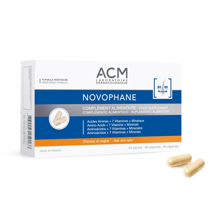 إذا كان شعرك يتساقط بسهولة أو أظافرك تتكسر بسرعة، فـ كبسولات ACM Novophane هو مكمل غذائي يومي