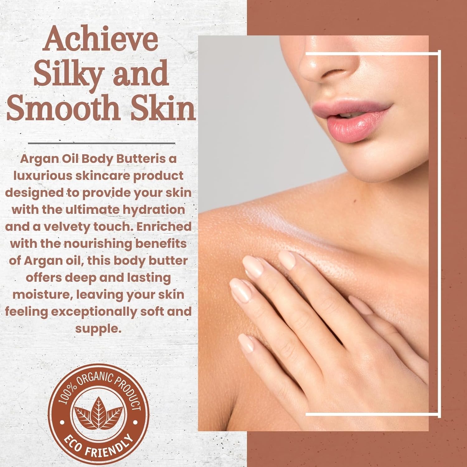 استمتع بتجربة فاخرة ومغذية للبشرة مع زبدة الجسم المحسنة بزيت الأركان. توفر هذه الزبدة ترطيبًا ضروريًا وتغذية عميقة لبشرتك. بفضل كنز العناية بالبشرة، زيت الأركان، يترك بشرتك مشعة ومنتعشة. مناسبة لجميع أنواع البشرة، ، تمتاز بملمس ناعم يمتصه الجلد بسهولة. اجعل هذه الزبدة جزءًا من روتين العناية اليومي لبشرتك واستعد للشعور بالنعومة والإشراقة.