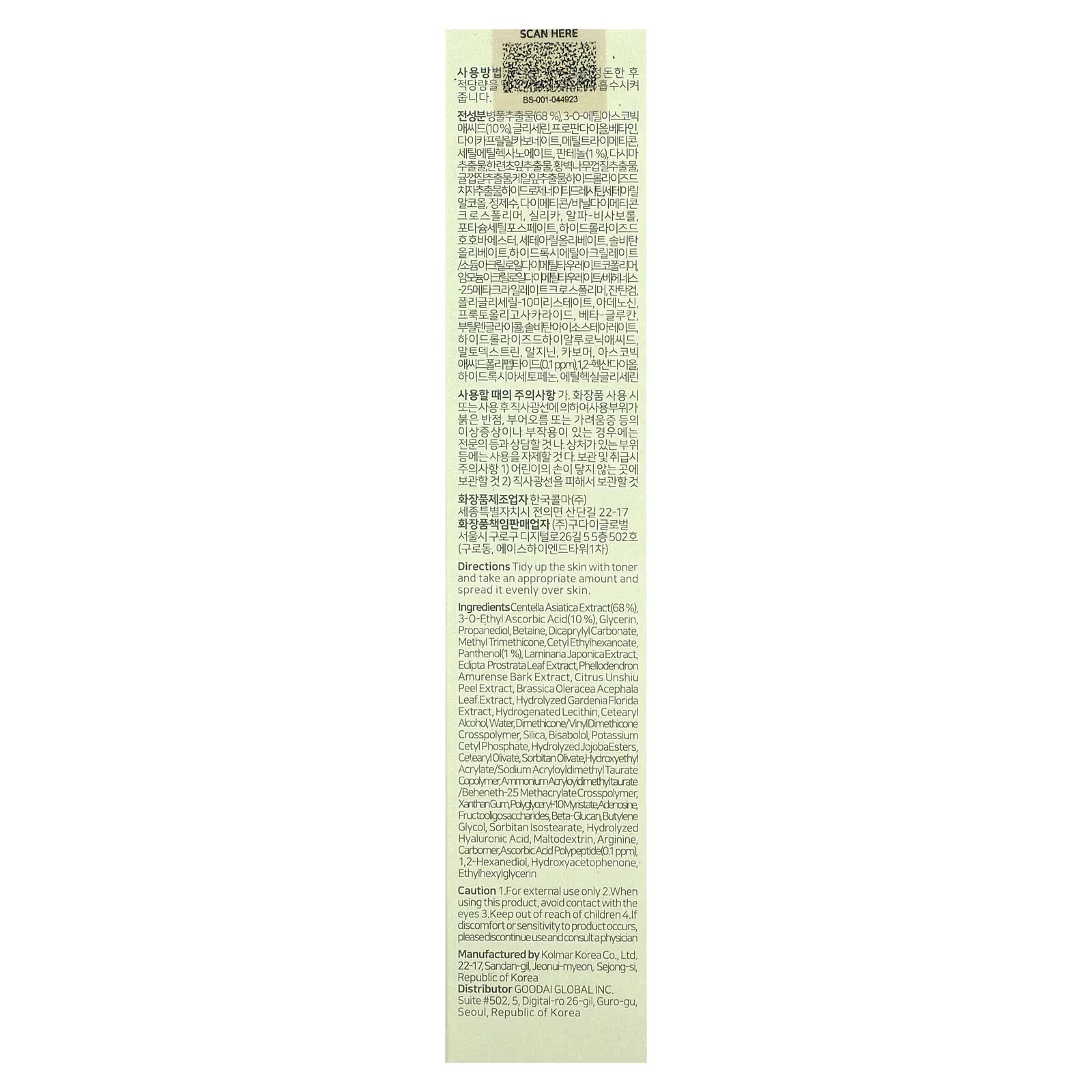 سيروم تفتيح يحتوي على مستخلص كينتيللا اسياتيكا وفيتامين C كمكونات رئيسية. تم تحسين عيوب منتجات فيتامين C النقي الموجودة في السوق، مثل الالتصاق والتشحيم والجفاف. كما تم تقليل مستوى تهيج المنتج أيضًا باستخدام مشتقات فيتامين سي عالية الثبات. يتم استخدام مستخلص كينتيللا اسياتيكا العضوي الذي يحتوي على نسبة عالية من المكونات النشطة ومزجه معًا لتعزيز تهدئة البشرة وترطيبها.