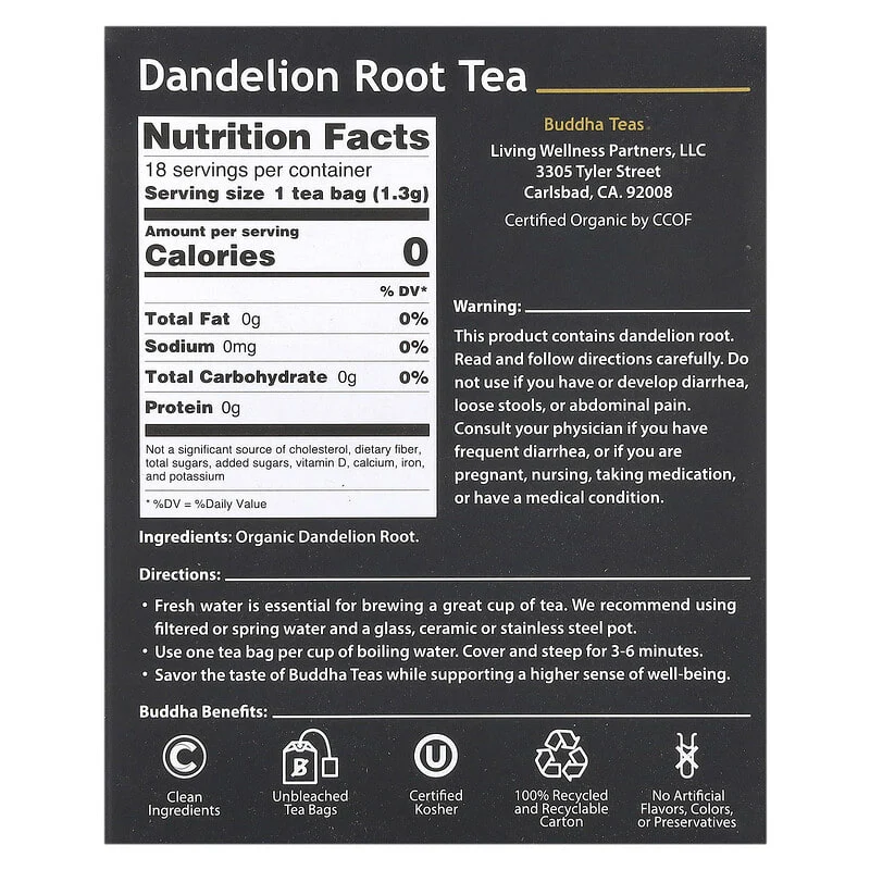 بودا تيز شاي أعشاب عضوي جذور الهندباء خال من الكافيين 18 كيس Buddha Teas Organic Herbal Tea Dandelion Root