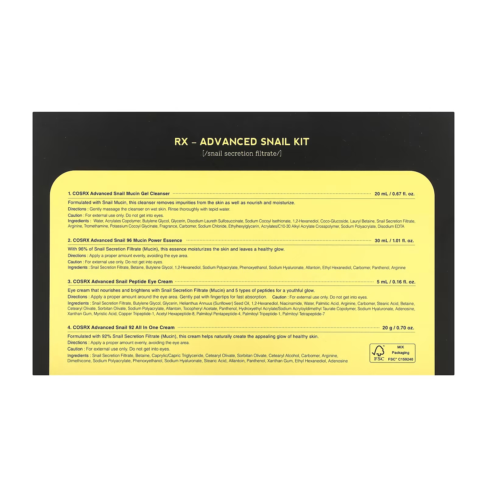 مجموعة الحلزون كوزركس 4 قطع تمنحك العناية المثالية للحصول على بشرة نضرة ومشرقة. بفضل قوة مكونات الحلزون الفعالة، ستشعرين بتجديد البشرة وتحسين ملمسها منذ الاستخدام الأول. تحتوي المجموعة على خلاصة الحلزون التي تعمل على تهدئة البشرة وترطيبها بعمق، مما يتركها ناعمة كالأطفال وصحية طوال اليوم.
