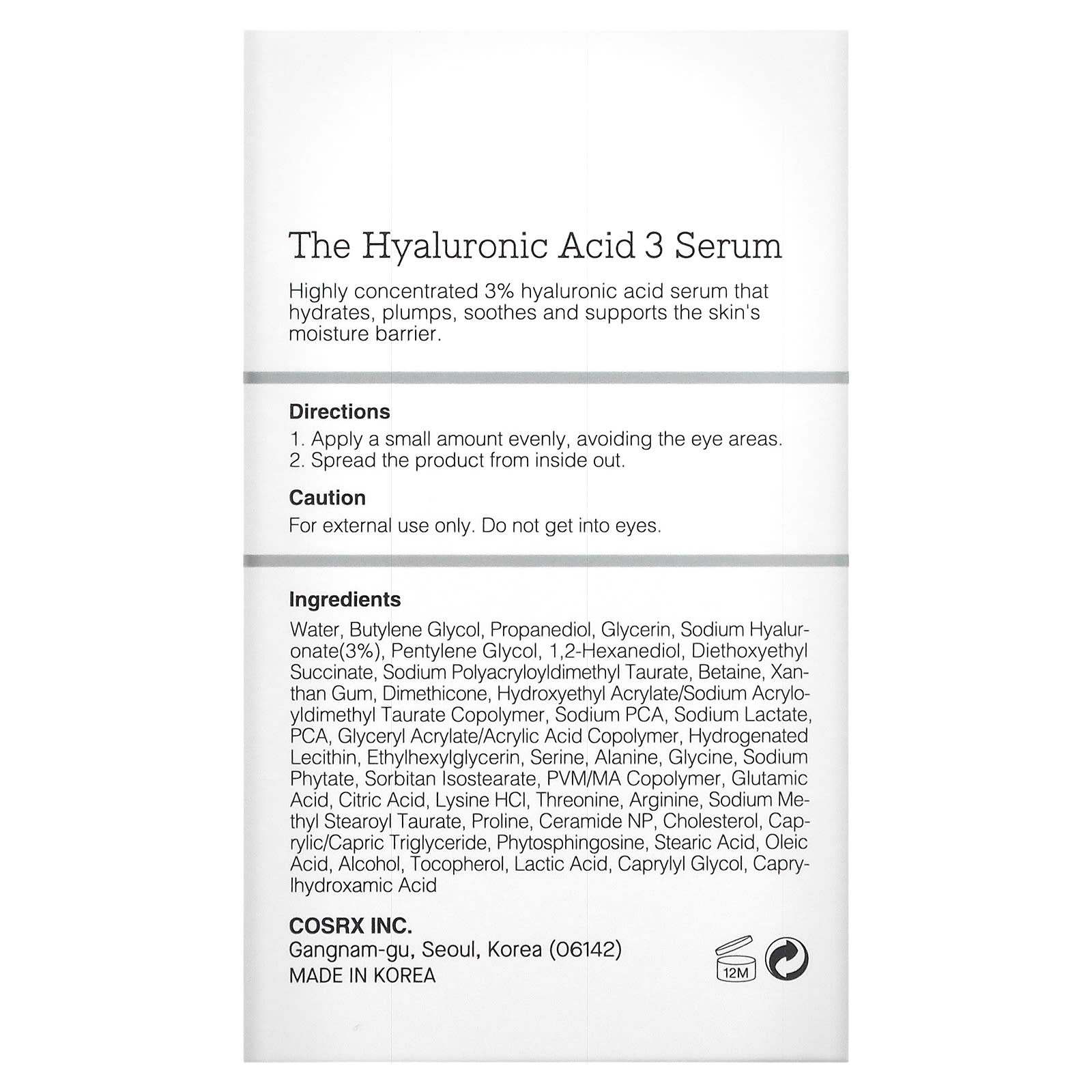 سيروم عالي التركيز بحمض الهيالورونيك بنسبة 3% يرطب البشرة ويزيد من نضارتها ويهدئها ويدعم حاجز الرطوبة في البشرة.