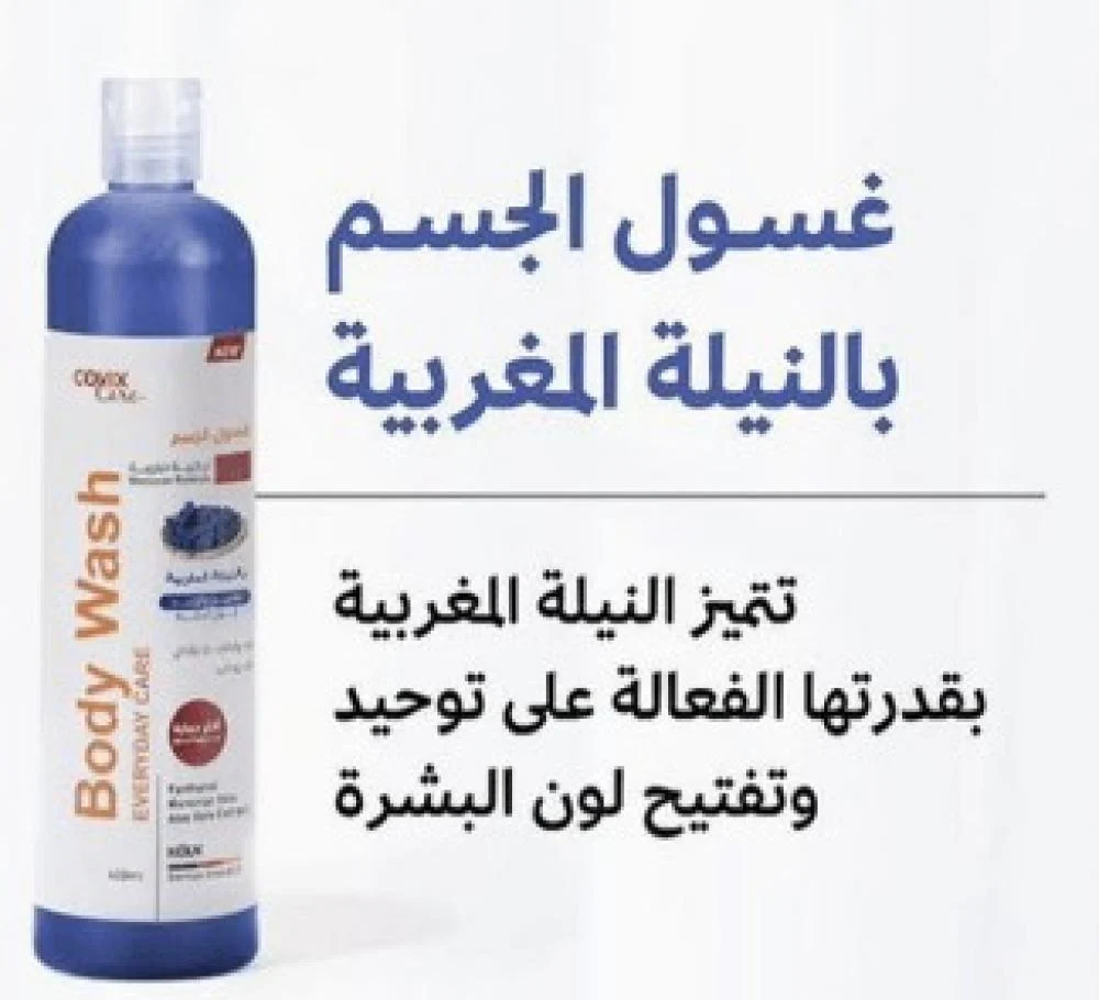 كوفيكس كير غسول الجسم بالنيلة المغربية هو منتج غني بالفيتامينات و مكونات جمال نباتية و مستخلصات النيلة المغربية لتفتيح و توريد لون البشرة. احصلي على بشرة نظيفة ومدللة وذات رائحة عبقة مع هذا الغسول.