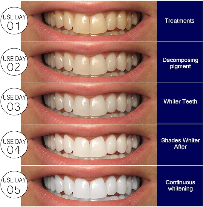 1. إزالة البقع: يمكن لشرائط تبييض الأسنان الخاصة بنا إزالة البقع من أسنانك من القهوة والشاي والتبغ والنبيذ وغيرها من المصادر لجعل أسنانك أكثر بياضًا.