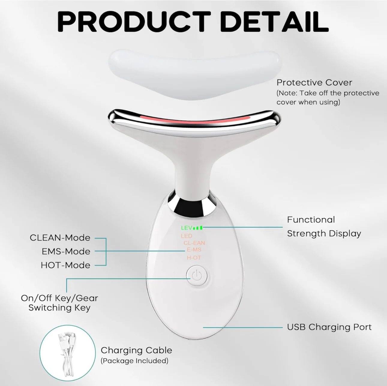 أداة تجميل الرقبة مع وضع ضوئي صوتي بثلاثة ألوان، والذي يمكن أن يصل مباشرة إلى أسفل الجلد، وتحسين جودة البشرة.
