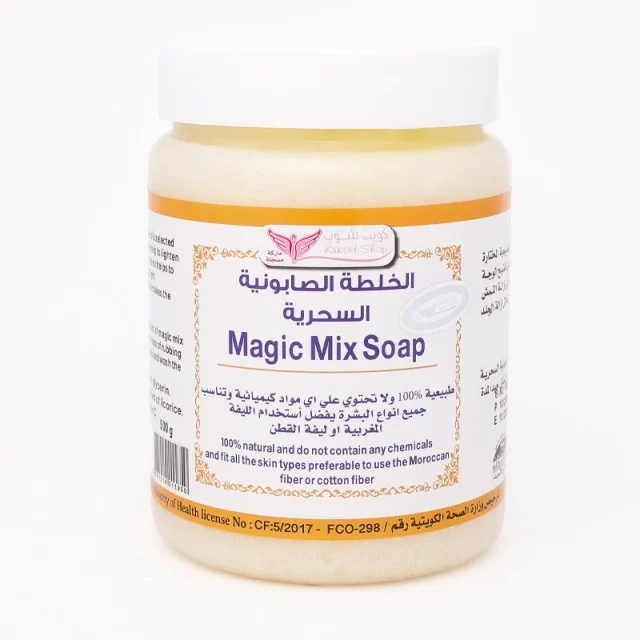 - لاستخدام صابونيه الخلطة السحرية يتم بلل الجسم بالماء ويتم وضع كمية مناسبة من الصابونية على الجسم، ويترك لمدة 10 دقائق ثم يتم فرك الجسم بالليفة بحركة دائرية للحصول على أفضل النتائج.