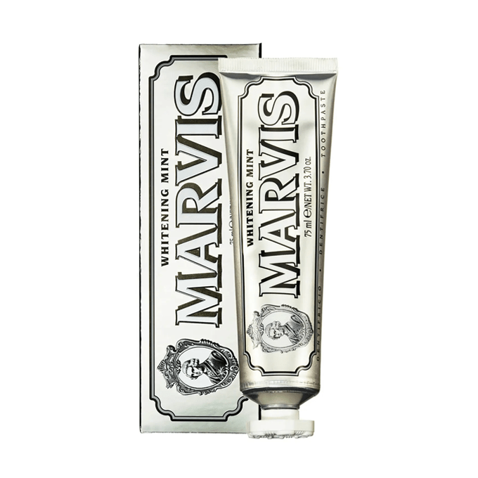 Marvis Whitening Toothpaste ينظف الأسنان واللثة بلطف وفعالية، دون التسبب في حساسية أو تهيج. - تصميم أنيق وفاخر