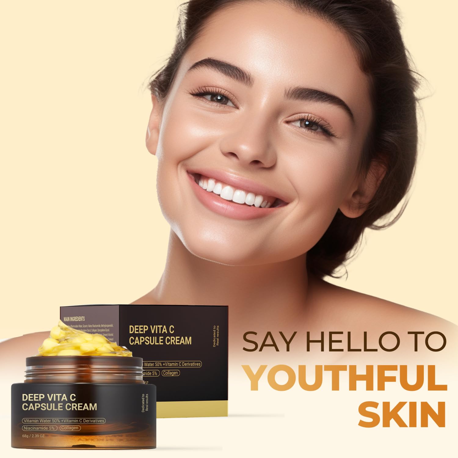 يحتوي هذا الكريم على 500,000 جزء في المليون من ماء الفيتامين وكبسولة فيتامين C، التي تعمل على إزالة البقع الداكنة والنمش القديم بفعالية.