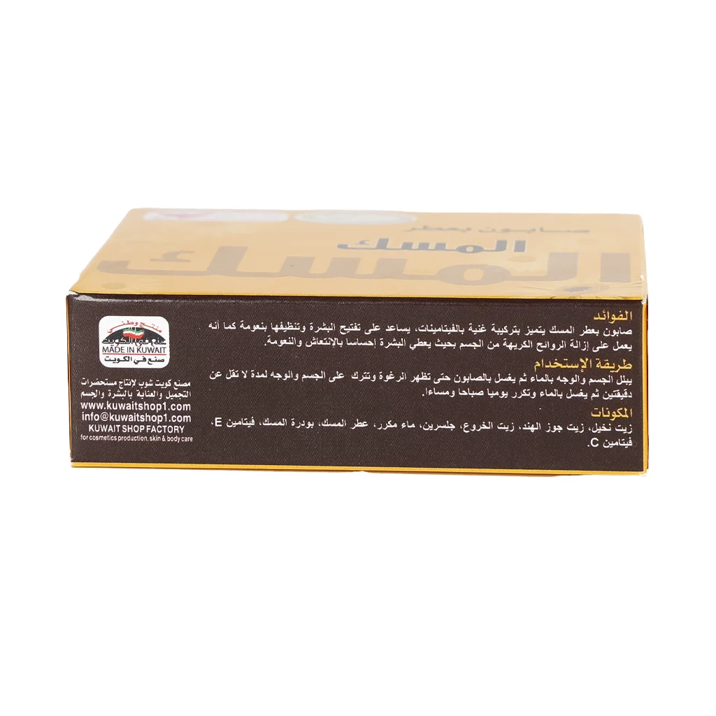 صابون المسك كويت شوب يساعد على تفتيح البشرة وتنظيفها بنعومة ويعمل على إزالة الروائح الكريهة من الجسم ويعطي البشرة رائحة المسك إحساسا بالانتعاش طوال اليوم