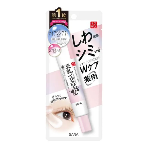 كريم العيون سانا ناميراكا هونبو بحليب الصويا والأيزوفلافون هو كريم مرطب ومقاوم للشيخوخة، غني بمستخلص الأيزوفلافون الصويا للمساعدة في منع التجاعيد. المنتج خالٍ من العطور والألوان الصناعية والزيوت المعدنية.