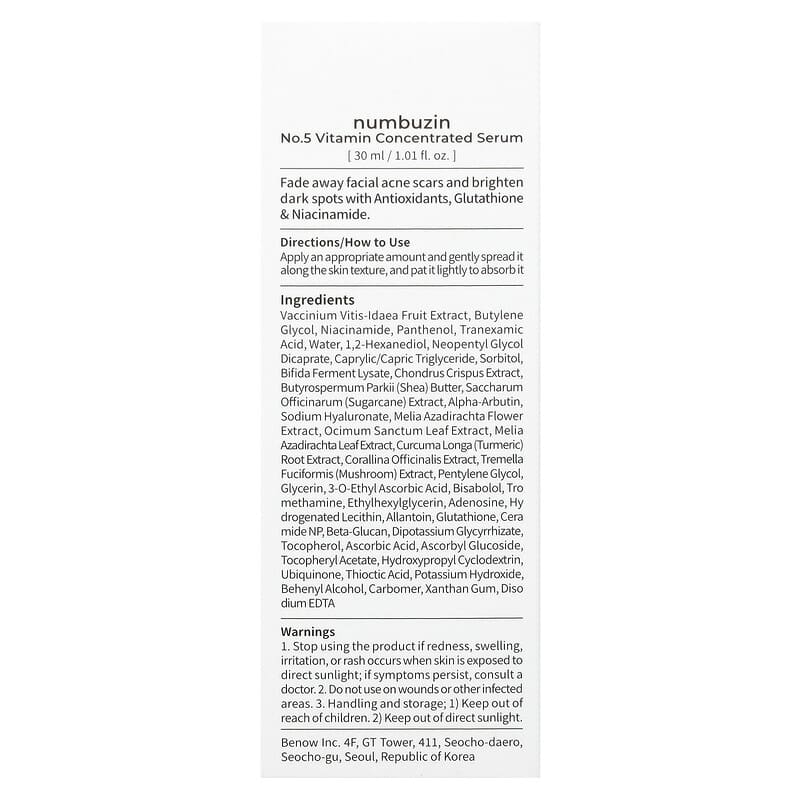 نومبوزين‏ سيروم 5 للبقع وحب الشباب 30مل Numbuzin No.5 Vitamin Concentrated Serumنومبوزين‏ سيروم 5 للبقع وحب الشباب 30مل Numbuzin No.5 Vitamin Concentrated Serum