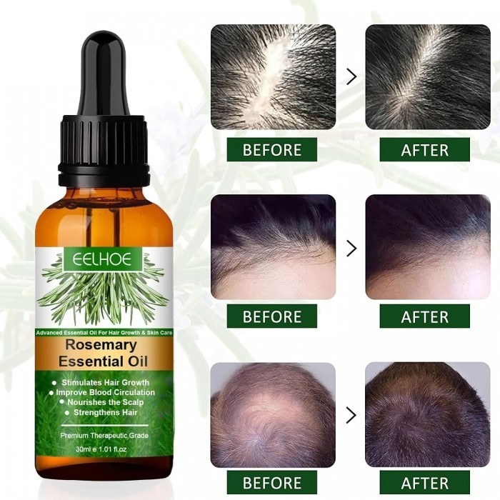 - نمو الشعر: يساعد زيت إكليل الجبل العطري على تحفيز نمو الشعر وتحسين صحة فروة الرأس. يعمل على زيادة تدفق الدم إلى فروة الرأس، وتعزيز نمو الشعر الصحي.