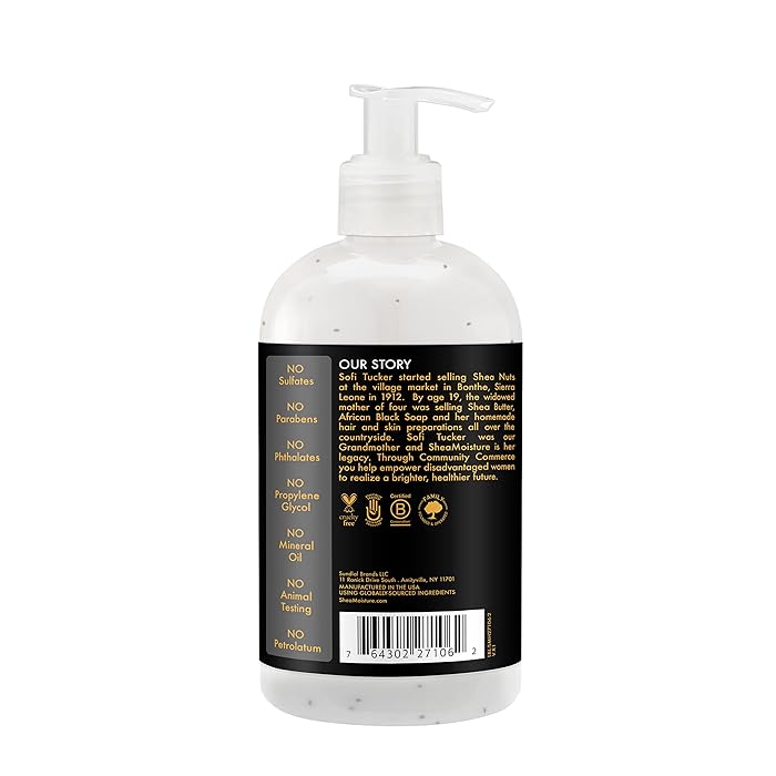 بلسم التوازن العميق شيا مويستشر بالصابون الإفريقي الأسود المصنوع من فحم الخيزران ينعم الشعر ويفك تشابكه ويرطبه على الفور مع هذه التركيبة المرطبة التي تلطف فروة الرأس دون إرهاق الشعر. يمتزج الصابون الأسود الإفريقي وفحم الخيزران وزيت شجرة الشاي ومستخلص لحاء الصفصاف في تركيبة العناية التي توفر فوائد تغذية فروة الرأس وترطيب متوازن لتنعيم الشعر. يترك الشعر ناعمًا وسهل التصفيف.