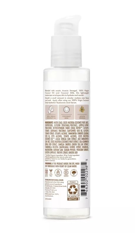 • لوشن مرطب الوجه اليومي بزيت جوز الهند البكر بنسبة 100% من شيا مويستشر تعمل زبدة الشيا على ترطيب البشرة بعمق مع الفيتامينات والأحماض الدهنية الأساسية.