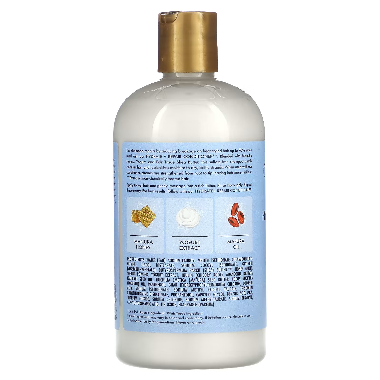 يعمل هذا الشامبو الخالي من الكبريتات على تنظيف الشعر بلطف، وتقوية الخصلات من الجذور إلى الأطراف. مزيج من زبدة الشيا، وعسل المانوكا والزبادي المصنوع وفقًا لمعايير التجارة العادلة في تركيبة غنية تعيد ترطيب الخصلات الجافة والمقصفة، مع تعزيز صحة البصيلات. يترك الشعر بملمس أكثر مرونة.