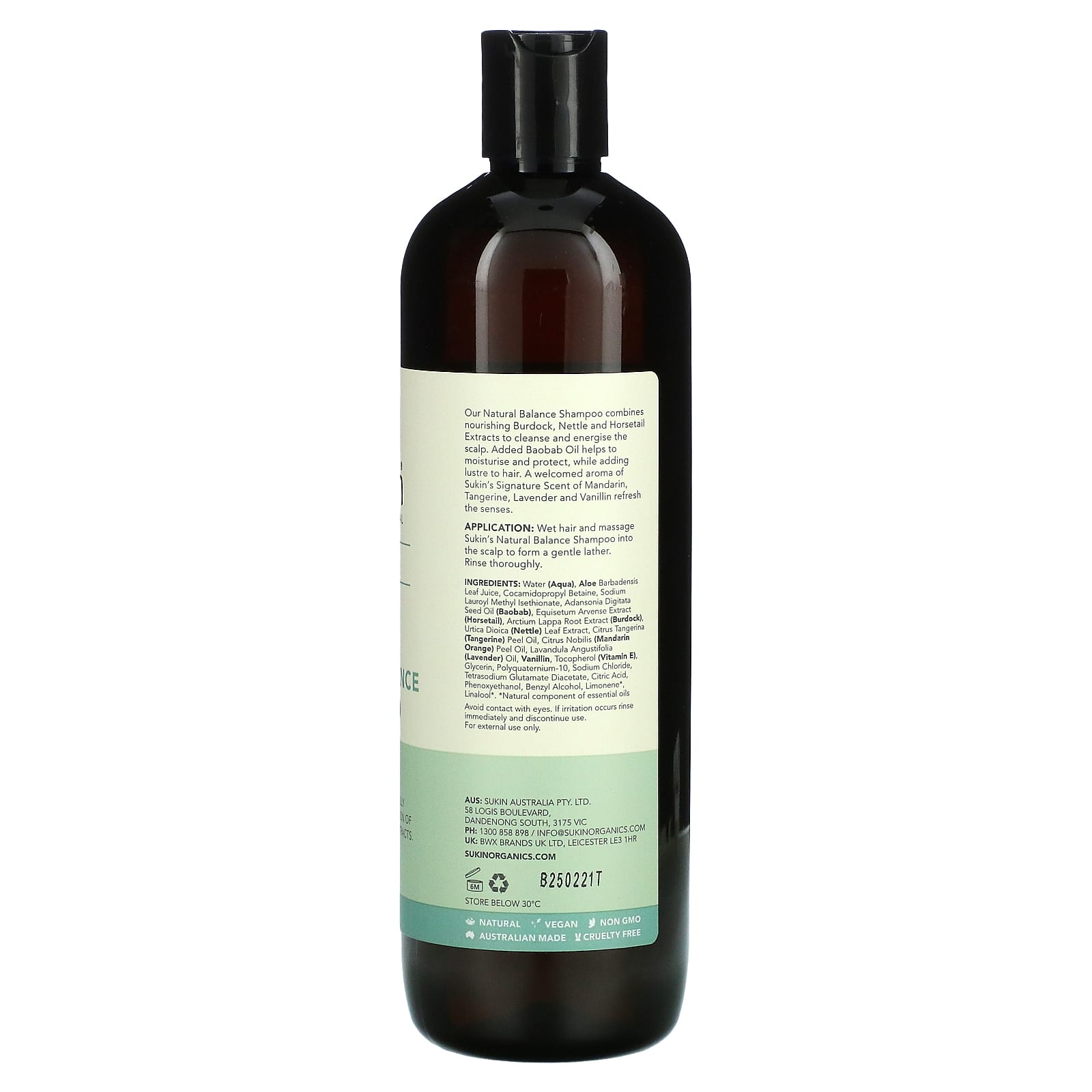 يجمع شامبو التوازن الطبيعي الخاص بنا بين مستخلصات الأرقطيون والقراص وذيل الحصان الغنية بالعناصر الغذائية لتنظيف فروة الرأس وتنشيطها. يساعد زيت الباوباب المضاف في ترطيب الشعر وحمايته مع إضفاء لمعان للشعر. رائحة رائعة من عطور Sukin المميزة من الماندرين واليوسفي واللافندر والفانيلين التي تنعش الحواس.